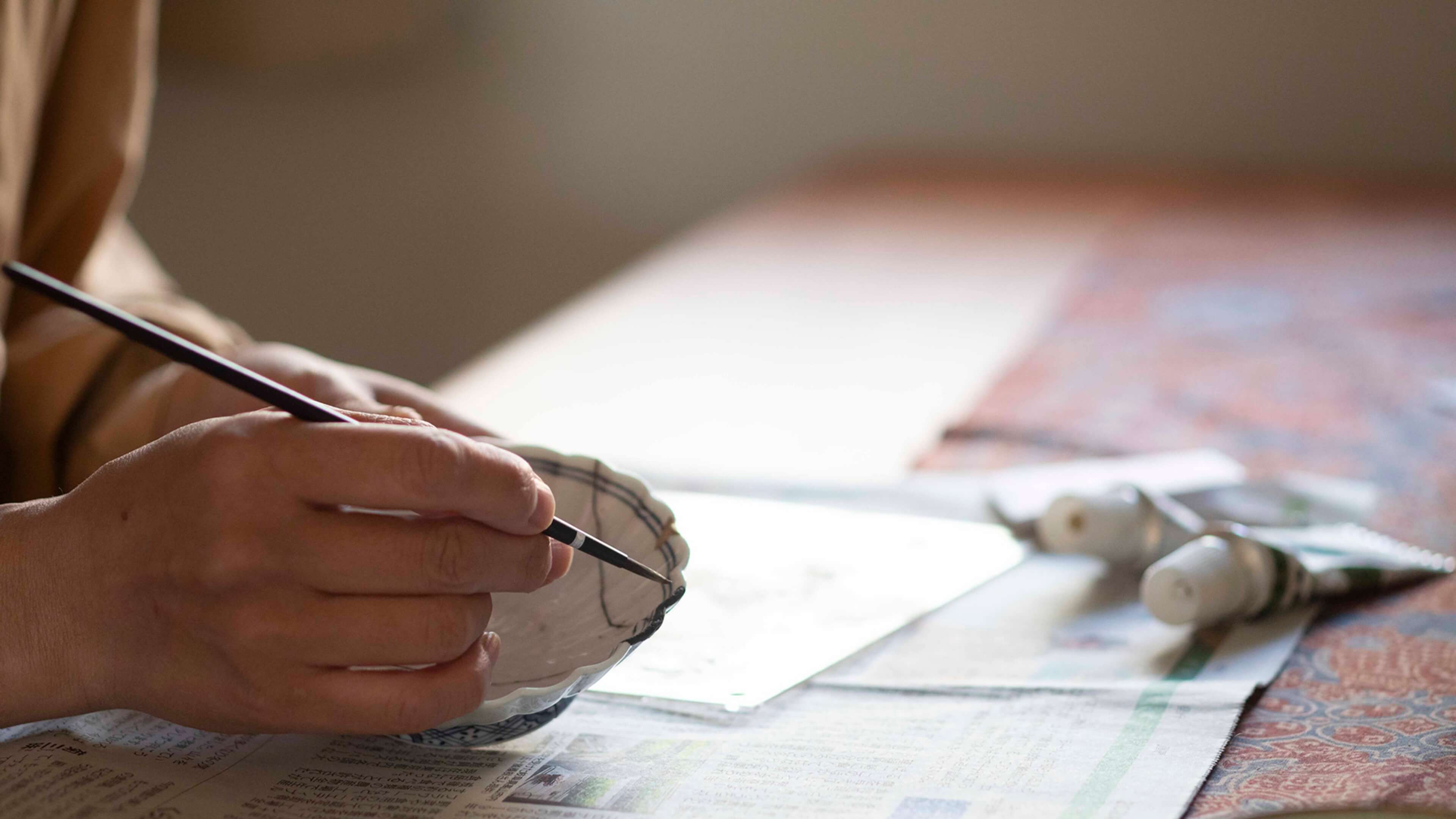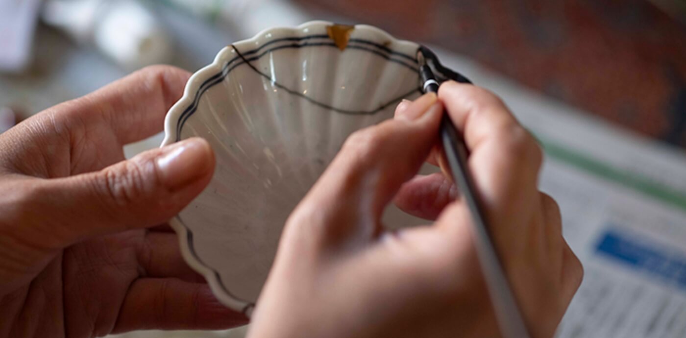 欠けを負った茶碗に、日常の記憶が刻まれていました。修復ではその時間を消さず、金で静かに縁取り、再び食卓に戻る器として仕上げています。